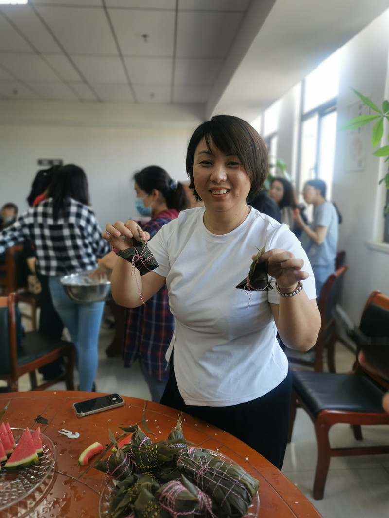 “你看我的粽子包成功了”“我的怎么又漏了”“老師你看我的行不行”。望著一張張專(zhuān)注的笑臉、一盤(pán)盤(pán)團(tuán)結(jié)協(xié)作的勞動(dòng)成果,食堂大廳里歡聲笑語(yǔ),交流聲此起彼伏。一掃平日工作的緊張,共享工會(huì)大家庭的溫暖。