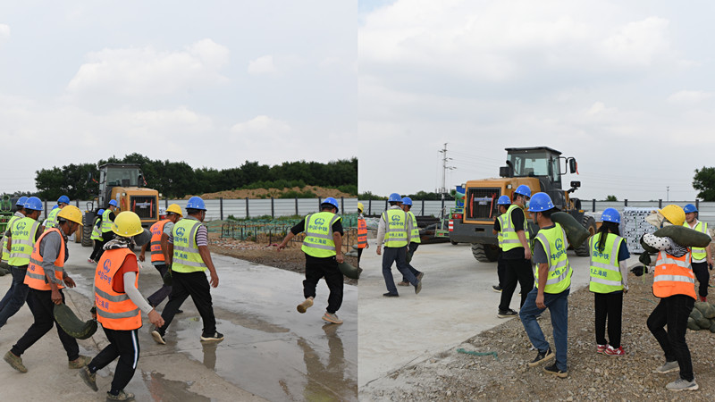 防汛搶險(xiǎn)情景模擬:出現(xiàn)強(qiáng)降雨天氣雨水沖破基坑圍堰險(xiǎn)情、拉響警報(bào)、啟動(dòng)應(yīng)急事故救援預(yù)案、組織應(yīng)急搶險(xiǎn)人員封堵基坑圍堰、啟動(dòng)備用水泵排查基坑積水、設(shè)置現(xiàn)場(chǎng)警戒并安排專(zhuān)人值守。
