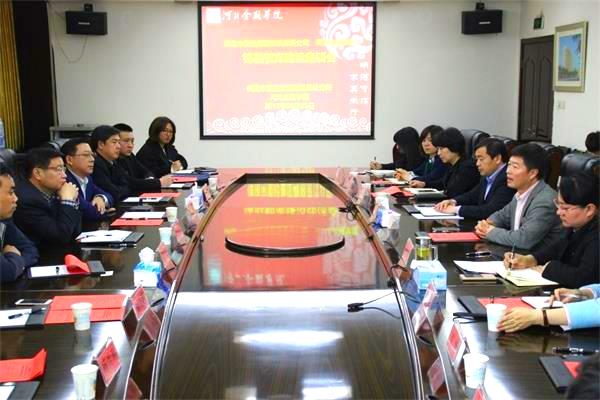 為了響應黨中央關于加強中國特色新型智庫建設的號召,2017年4月5日下午,我集團公司董事長陳樹存、總經(jīng)理謝鵬、副總經(jīng)理蔡紅星一行,前往河北金融學院參加德融智庫簽約儀式。河北金融學院校長楊兆廷、副校長韓景旺等出席座談會。會議由河北金融學院科研處處長楊偉坤主持。