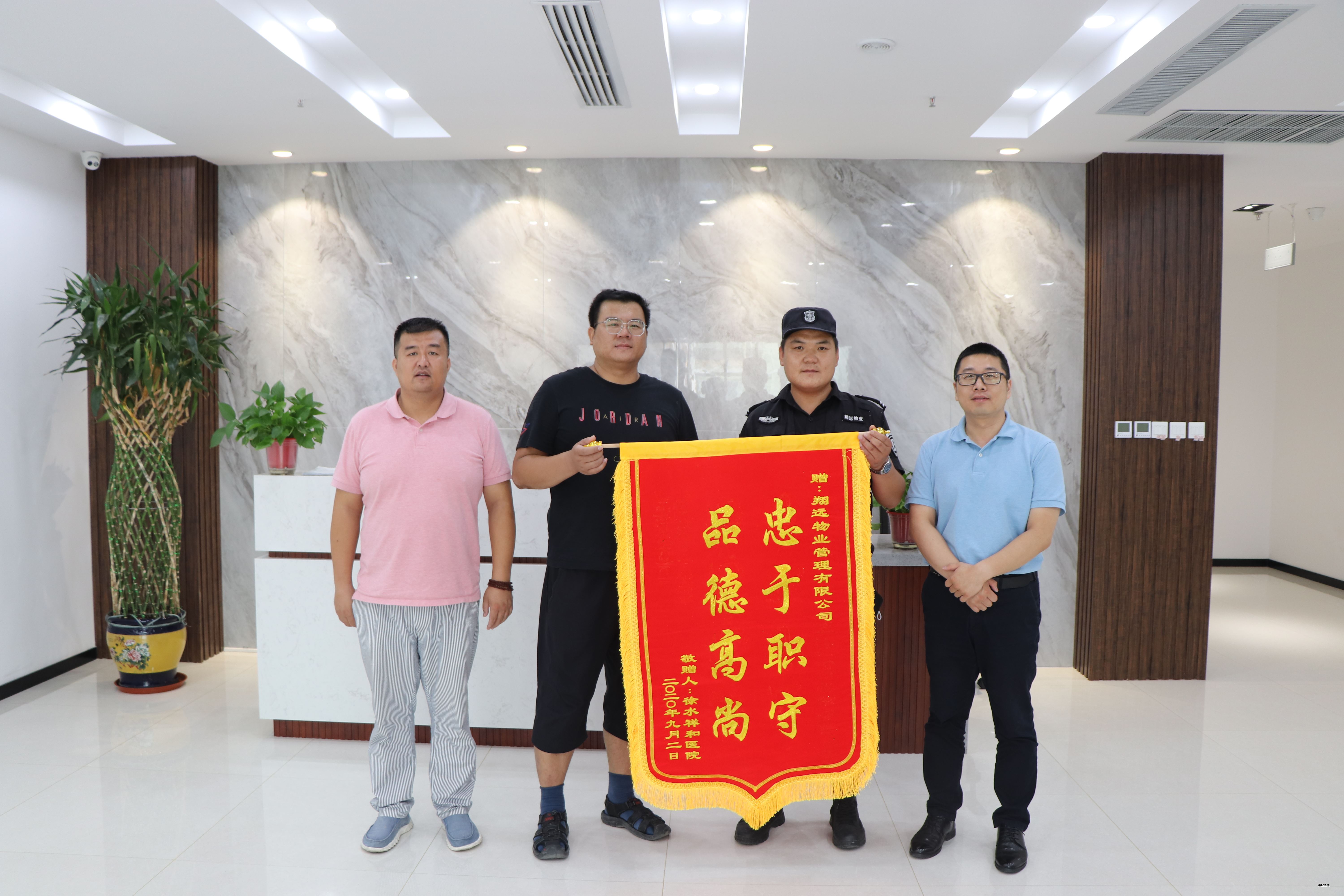 9月2日上午,一位男士手捧一面“忠于職守,品德高尚”的錦旗敲響翔遠(yuǎn)物業(yè)辦公區(qū)的門,進(jìn)門后非常激動(dòng)的說(shuō):“感謝貴公司領(lǐng)導(dǎo)及保安人員周再,幫我看護(hù)車輛保管物品?!?/span>